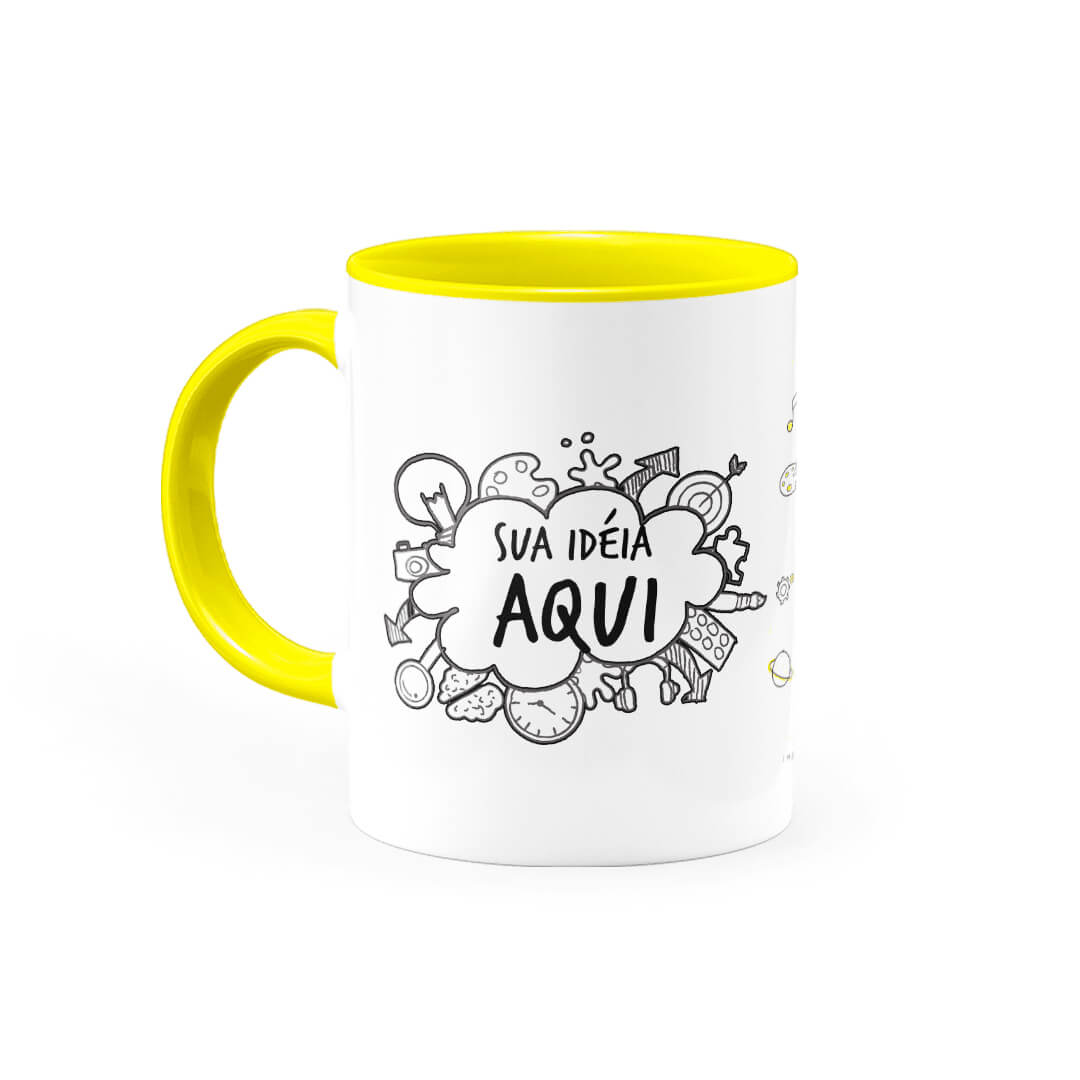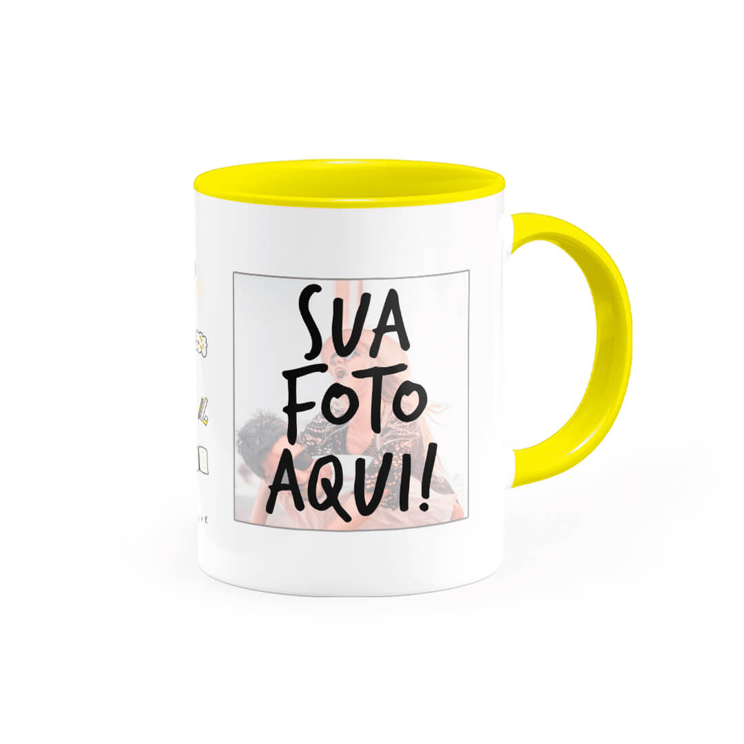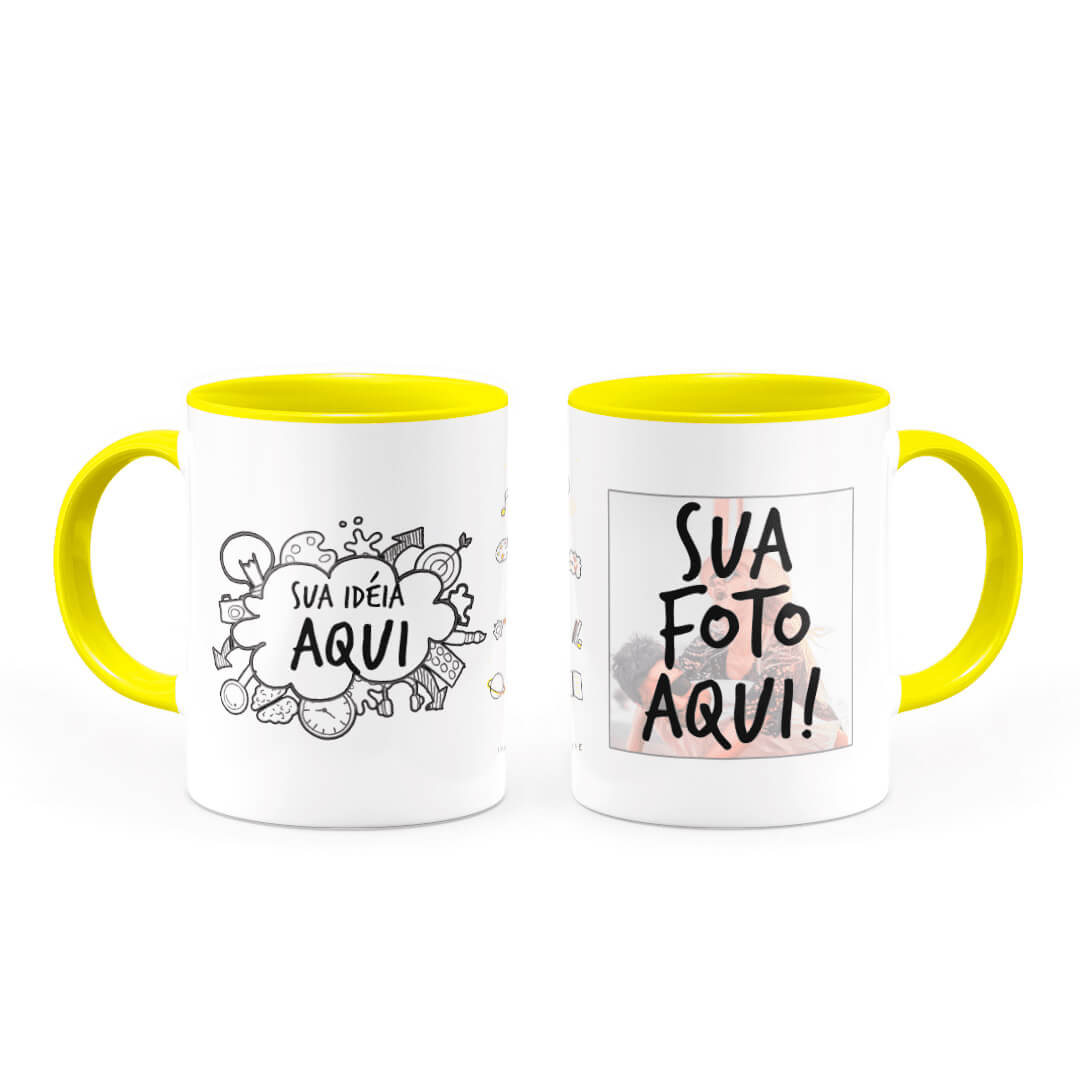 Ter uma caneca personalizada alça e interior amarela criada do seu jeito é sempre um diferencial, pois é sempre gostoso nos presentear ou presentear alguém querido, além de poder apreciar em uma caneca, seja um café, chá, chocolate quente e outras bebidas.