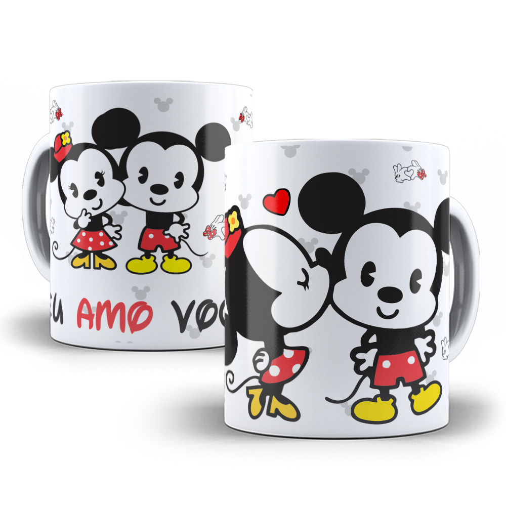Caneca Personalizada Frase Mickey e Minnie Eu Amo Voce Dia dos Namorados